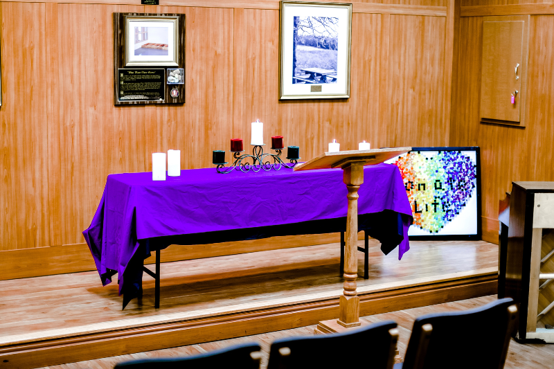 The Buck Rice Memorial Chapel, located just off the Main Lobby elevators, is always open for quiet meditation and prayer. Each Sunday morning at 8:30, one of our chaplains leads a service and all are welcome to attend.