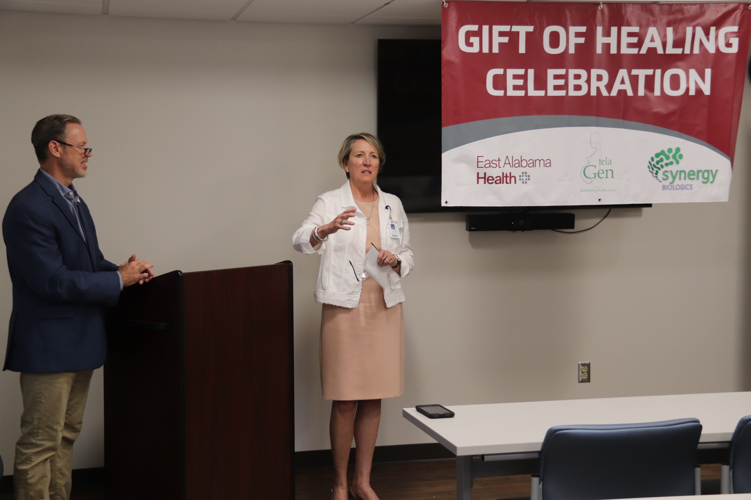 East Alabama Health President and CEO Laura Grill and David Hill, CEO of telaGen and Synergy Biologics, reflect on the impact that birth tissue donations at EAMC have had since the donation program began in 2017. Over 1,100 mothers have donated since 2017 with each donation being used to help up to 50 wound care patients.