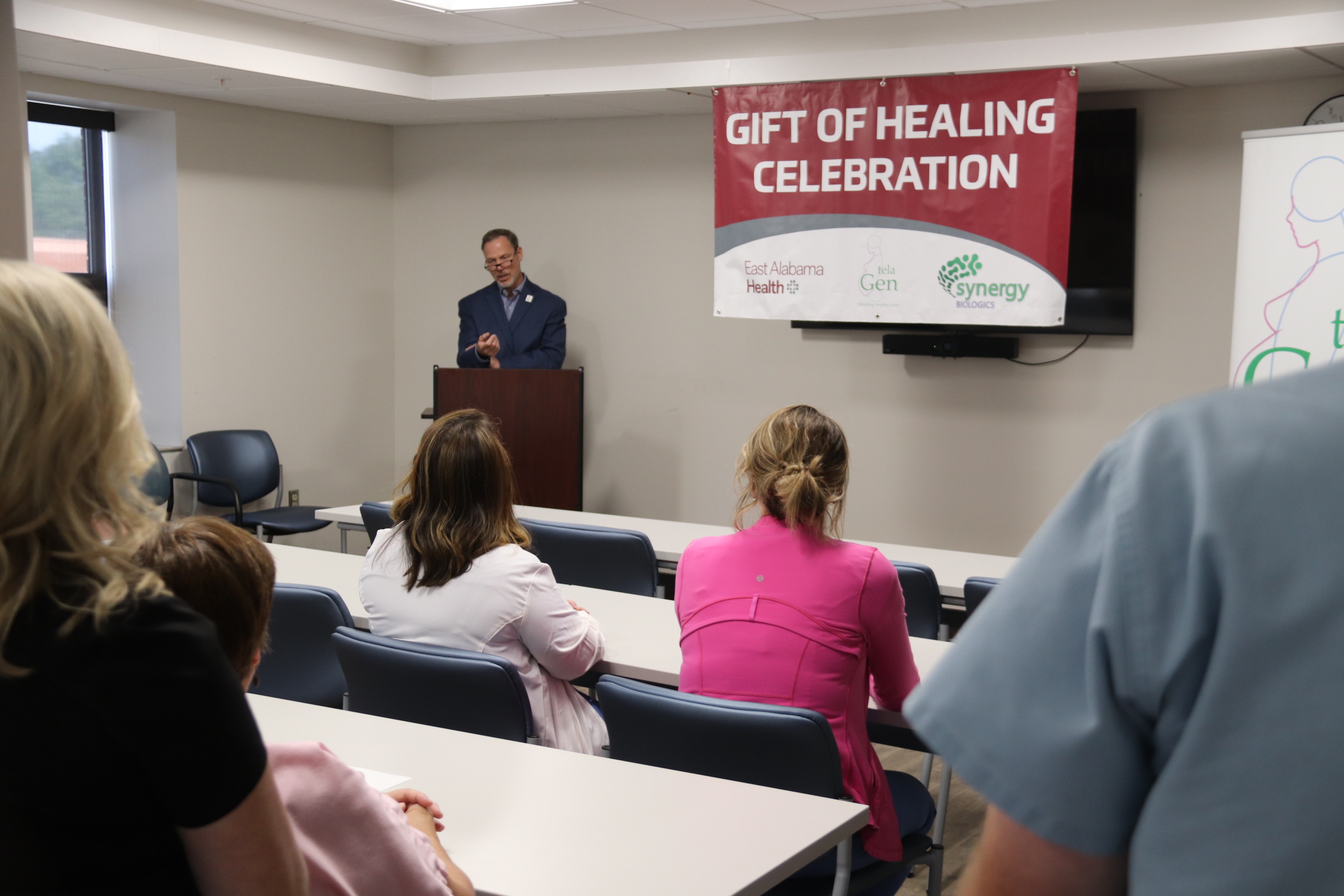 August 25, 2023OPELIKA, Ala.—Representatives and employees from East Alabama Health (EAH), telaGen, Synergy Biologics, and the Auburn and Opelika Chambers of Commerce gathered on Thursday, Aug. 24, to recognize the impact of birth tissue donations by mothers at East Alabama Medical Center (EAMC).