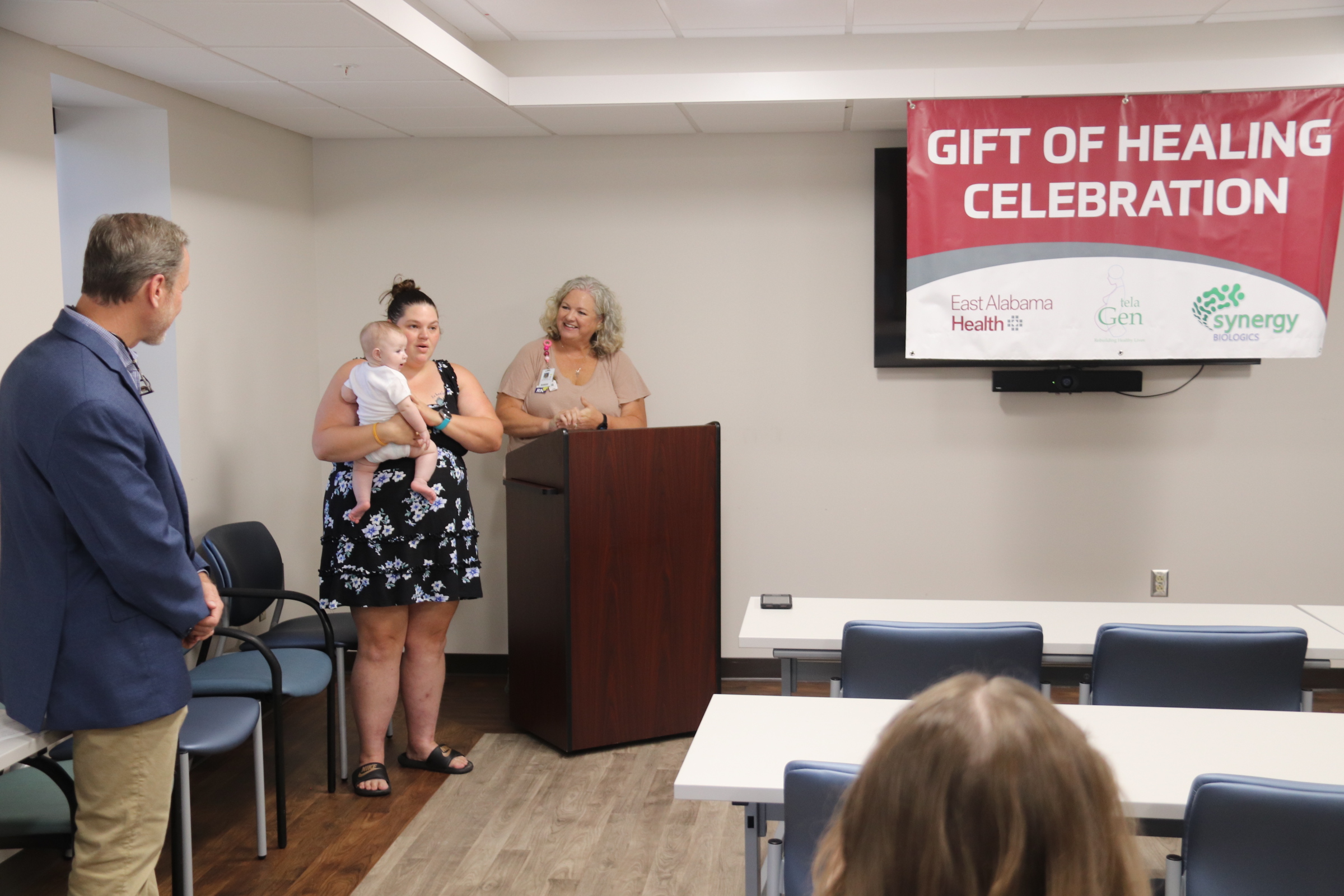 “It’s so important that we acknowledge that since 2017, more than 1,100 placenta donations have been made by new moms in our community,” said Laura Grill, president and CEO of East Alabama Health. “And, with our Wound Treatment Center coming on board this year to treat patients with skin grafts made from birth tissue donations, it’s awesome that this circle of life-enhancement has come to fruition.”