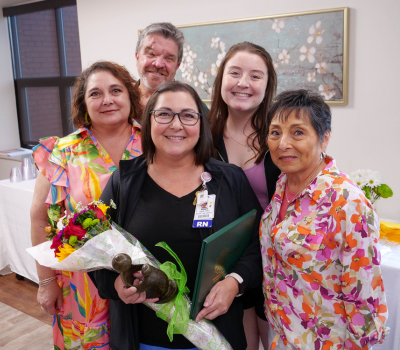During their surprise recognition ceremonies, each nurse heard the nomination read that earned them their DAISY award and received a hand-carved sculpture from Zimbabwe titled “A Healer’s Touch,” a DAISY Award certificate and a DAISY Award pin.