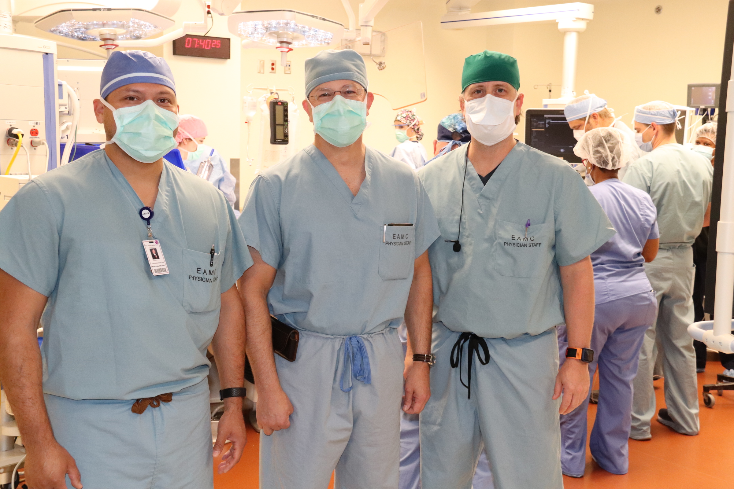 Dr. Crowe, who has been with EAMC for 12 years, says “the first TAVR case went phenomenal, and the reason it went phenomenal is because of all of the planning that went into it.” He states that “none of this is possible without the 100 percent dedication of the staff. Dr. Martinez and Dr. Reames did a fantastic job making this happen and everybody that surrounded them absolutely gave hours in making sure everything went smoothly for the patient (Mr. Riddle), and for patients to come.”