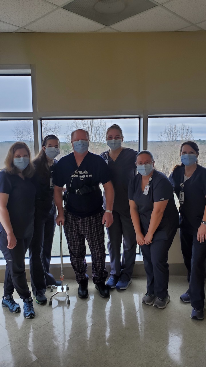 Holland was transferred to the Acute Inpatient Rehab Unit (ARU) at EAMC-Lanier, and over the course of his 14-day stay made incredible progress. Evolution of his stroke caused difficulties with syncope during his rehabilitation, but his medical team and therapists helped him manage this so that he could continue to participate with his therapy.