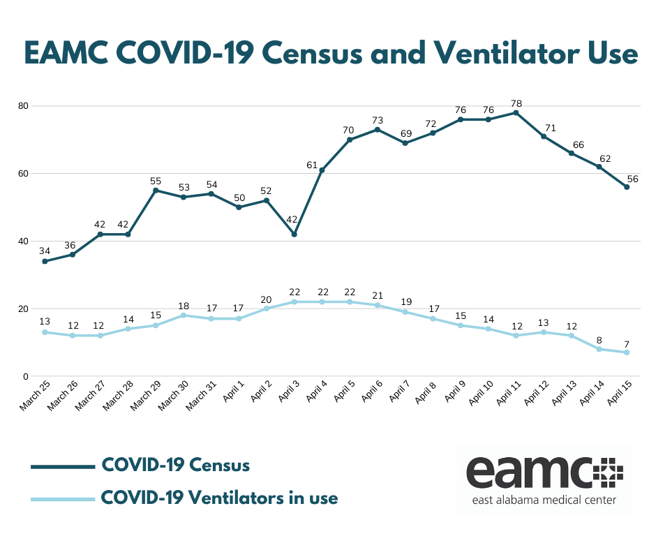Since reaching a high of 78 COVID positive and pending hospitalized patients at EAMC and EAMC-Lanier last Friday, the number has dropped each day. Can you share why?