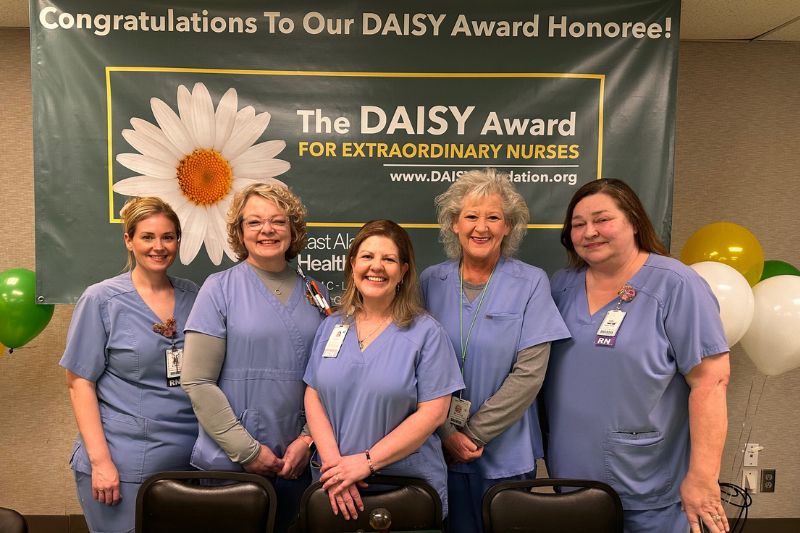 The DAISY Award recipients were Karlee Smith, a nurse on East Alabama Medical Center's (EAMC) Progressive Care Unit (PCU), Aquarius Golatte-Chapelle, a nurse on 5T, Lynn Capps, a nurse in EAMC's Emergency Department, Mardi Smith, a nurse in Cardiac Rehab at EAMC-Lanier Rural Emergency Hospital, and Arkira Dowdell and Ann Pollard, both nurses at the Spencer Cancer Center.