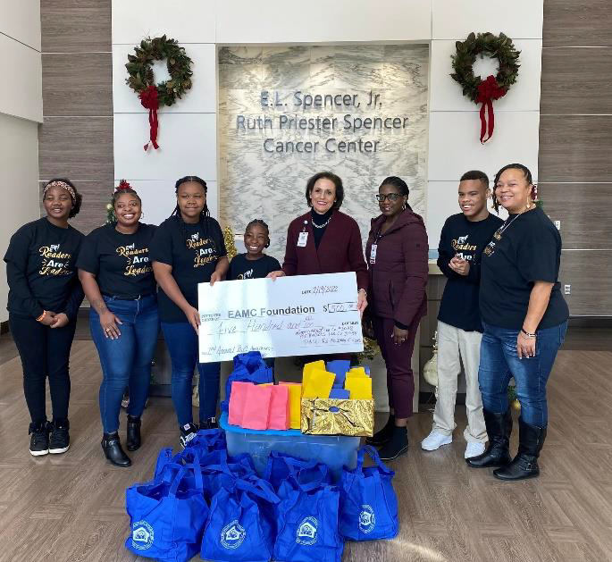 The Women of the Lee County Chapter NAACP, Youth Works of Lee County, and Pace Reading Club raised funds to create Holiday Goodie Bags for our local men and women fighting cancer. Volunteers assembled and delivered bags of treats and surprises alongside their donation, supporting the EAMC Foundation Spencer Cancer Center Patient Assistance Fund. Their kindness and generosity help our financially qualified patients receive access to wigs, prosthetic bras, and other financial needs. Thank you to the Women of the Lee County Chapter NAACP, Youth Works of Lee County, and Pace Reading Club for reminding our patients that no one fights their battle alone.