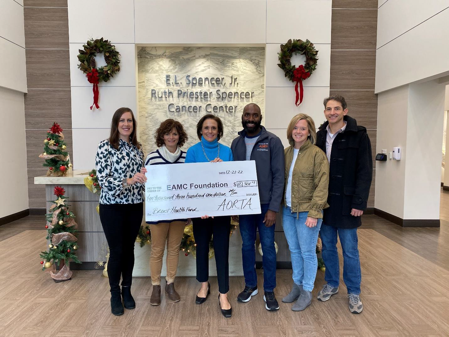 AORTA, Auburn Opelika Running and Track Association, supports the EAMC Foundation Breast Health Fund through their Tough Ten and Tough Two fundraiser. This fundraiser is a community event for all ages and types, from parents pushing strollers to dogs running with their owners. All proceeds from the run/walk are donated to assist in the early detection of Breast Cancer at the EAMC Spencer Cancer Center. Thank you, AORTA, for your continued support and generosity.